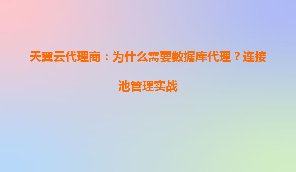 2025-05-17天翼云代理商:为什么需要数据库代理?连接池管理实战 一、引言:数据库代理的核心价值 在云计算时代,数据库作为业务系统的核心组件,其性能和稳定性直接影响用户体验。传统数据库架构面临连接数激增、资...