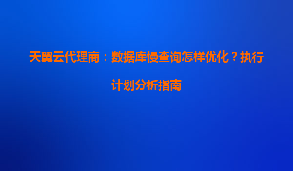 2025-05-17引言:数据库慢查询的挑战与天翼云的价值 数据库慢查询是业务系统性能下降的主要原因之一,可能导致用户体验恶化甚至交易流失。对于天翼云代理商而言,依托天翼云强大的基础设施与数据库服务能力,...