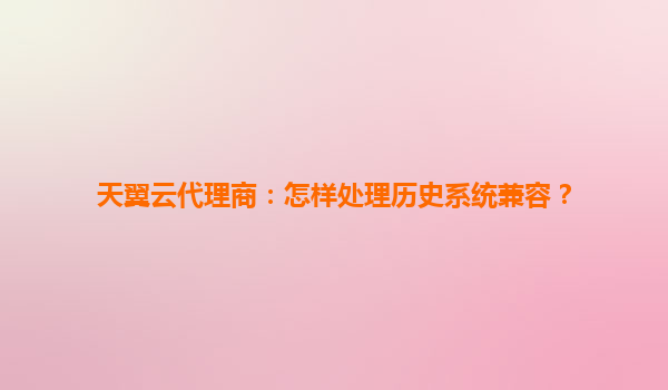 2025-05-09天翼云代理商如何高效处理历史系统兼容性问题? 一、历史系统兼容性挑战与天翼云的价值 企业在数字化转型中普遍面临历史系统与新平台对接的难题:老旧技术架构...
