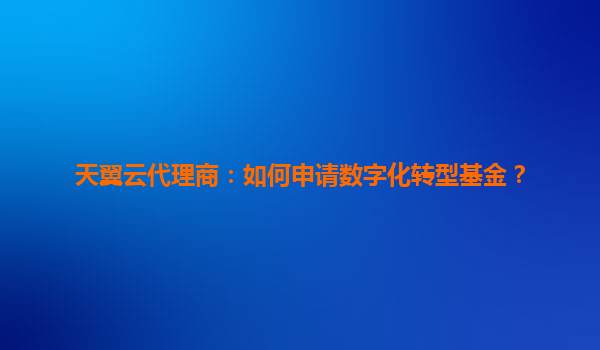 2025-05-09天翼云代理商:如何申请数字化转型基金? 一、数字化转型基金的意义与价值 数字化转型基金是由政府或企业设立的专项扶持资金,旨在通过技术赋能和资源支持,帮助传统企业及合作伙伴加速数字化升级。对...