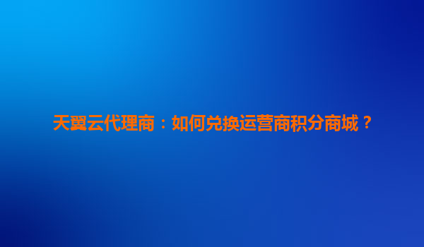 2025-05-02天翼云代理商如何兑换运营商积分商城? 一、运营商积分商城与天翼云代理商的关联 作为天翼云代理商,参与运营商积分商城的兑换活动是提升业务价值的重要途径。运营商积分商城通常由中国电信...