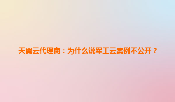 2025-05-01天翼云代理商视角:军工云案例不公开的原因与天翼云的核心优势 引言:军工云的特殊性与保密需求 在数字化转型浪潮中,“军工云”作为国家关键领域信息化建设的...