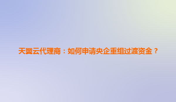 2025-05-01天翼云代理商如何申请央企重组过渡资金? 一、央企重组过渡资金政策背景 央企重组是国家优化国有资本布局的重要举措,为支持企业平稳过渡,相关部门设立了专项重组资金。该资金旨在帮助企业在...