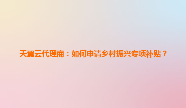 2025-05-01天翼云代理商申请乡村振兴专项补贴指南 一、乡村振兴专项补贴的政策背景与意义 国家持续推进乡村振兴战略,鼓励科技企业参与乡村数字化建设。作为中国电信旗下云计算服务商,天翼云积极响应政策号召,...