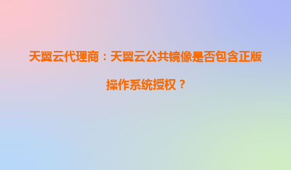 2025-10-20天翼云公共镜像是否包含正版操作系统授权?——解析天翼云代理商的优势 一、天翼云公共镜像与正版授权的关系 天翼云作为中国电信旗下的云计算服务品牌,其公共镜像是用户快速部署云服务器的重要资源。...