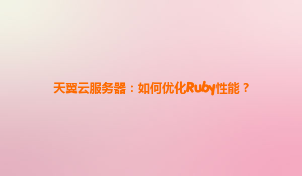 2025-04-17天翼云服务器:如何优化Ruby性能? 一、Ruby性能优化的核心方向 在基于天翼云服务器部署Ruby应用时,性能优化需围绕以下核心展开: 1.服务器资源配置:计算能力、存储性能与网络带宽的...