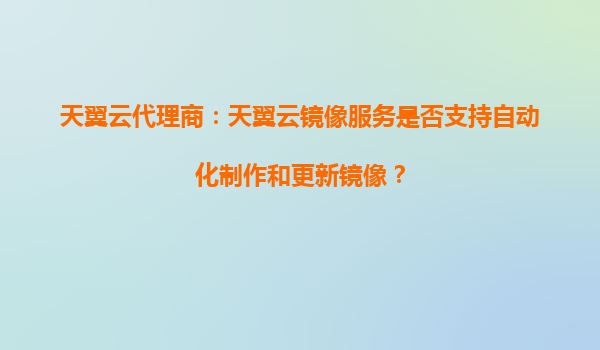 2025-10-18天翼云代理商:天翼云镜像服务如何支持自动化制作与更新镜像? 一、天翼云镜像服务的核心功能 天翼云作为中国电信旗下云计算服务品牌,其镜像服务(ImageServi...