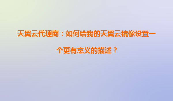 天翼云代理商指南:如何设置更有意义的镜像描述 引言 在云计算时代,镜像作为预配置的模板,是快速部署云服务器的重要资源。一个清晰、有意义的镜像描述能帮助用户快速理解镜像用途,提高运维效率。作为天...