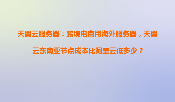 2025-04-03天翼云东南亚节点成本优势解析 在跨境电商行业,服务器部署成本是企业关注的核心问题之一。天翼云凭借其东南亚节点的战略性布局,在同等配置下,综合成本较阿里云低约15%-20%。这一差距主要体现在...