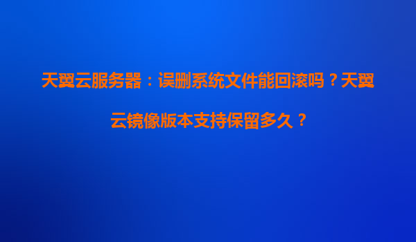 2025-04-03天翼云服务器:误删系统文件能回滚吗?镜像版本保留策略解析 在企业级云计算服务中,数据安全和系统稳定性是用户最关注的核心问题。天翼云作为国内领先的云服务提供商,通过灵活的备份机制和镜像管...