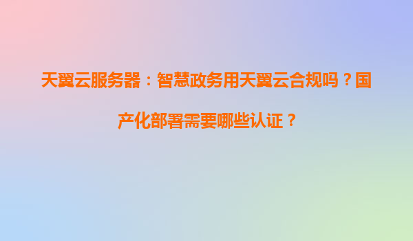 2025-04-03天翼云服务器:智慧政务的合规性与国产化部署认证解析 一、天翼云在智慧政务中的合规性分析 智慧政务作为国家数字化转型的核心领域,对数据安全和合规性要求极高。天翼云作为中国电信旗下的云服务品牌,凭...