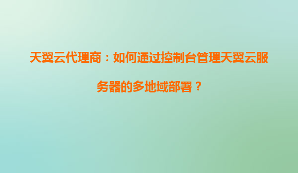 2025-03-31天翼云代理商:如何通过控制台管理天翼云服务器的多地域部署? 一、天翼云多地域部署的核心优势 作为国内领先的云服务提供商,天翼云凭借其独特的资源布局和技术能力,为代理商及企业用户提供了高...
