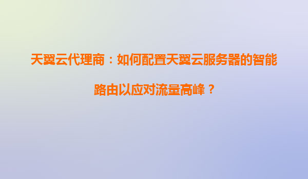2025-04-01天翼云代理商:如何配置天翼云服务器的智能路由以应对流量高峰? 一、智能路由配置的重要性与流量高峰挑战 随着企业数字化转型加速,业务流量呈现爆发式增长。尤其在电商大促、在...