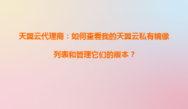 2025-10-17天翼云代理商:如何查看我的天翼云私有镜像列表和管理它们的版本? 一、天翼云私有镜像的核心优势 作为中国电信旗下的云计算服务品牌,天翼云在私有镜像管理方面具备以下显著优势: 高安全性...