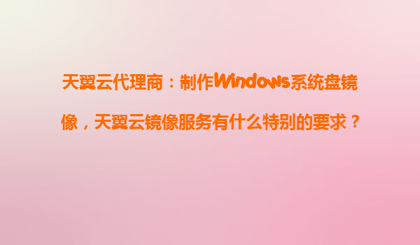 天翼云代理商:制作Windows系统盘镜像的服务与优势 一、天翼云镜像服务的特别要求 作为天翼云代理商,在为客户制作Windows系统盘镜像时,需遵循天翼云平台对镜...