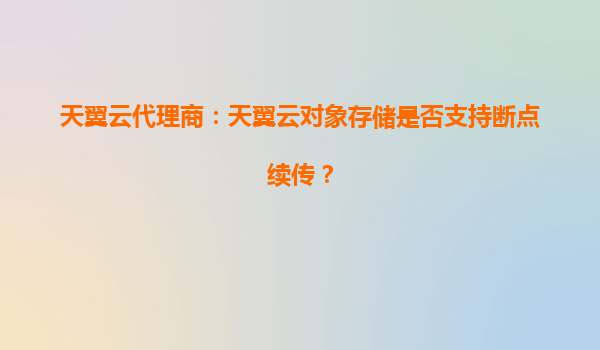 2025-10-14天翼云代理商解析:天翼云对象存储(OOS)是否支持断点续传? 一、什么是断点续传?其核心价值解析 断点续传是指在大文件传输过程中因网络中断或主动暂停后,能够从中断...