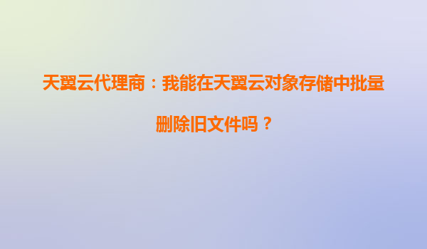 2025-10-14天翼云代理商指南:如何高效批量删除旧文件 作为天翼云代理商,客户常问:“能否在天翼云对象存储中批量删除旧文件?”答案是肯定的。天翼云对象存储(OOS)提供强大且灵活的文件管理功能,支持批量操作,...