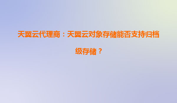 2025-10-14天翼云代理商解读:天翼云对象存储是否支持归档级存储? 一、天翼云对象存储的归档级存储支持 天翼云对象存储(OOS)作为中国电信旗下的核心云存储服务,全面支持归档级存储,满足企业对于冷数据长期备...