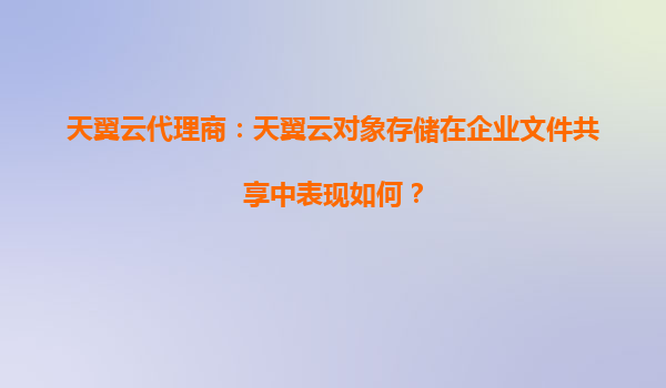 2025-10-11天翼云代理商:天翼云对象存储在企业文件共享中表现如何? 一、天翼云对象存储的核心优势 天翼云对象存储(OOS)是中国电信旗下天翼云提供的海量、安全、高可靠的云存储服务,尤其适合企业文件共...