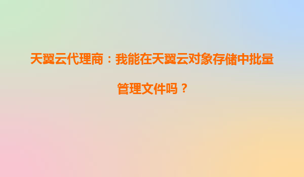 2025-10-11天翼云代理商:我能在天翼云对象存储中批量管理文件吗? 一、天翼云对象存储的核心优势 天翼云对象存储(OOS)是中国电信旗下提供的海量、安全、高可靠的云存储服务,适用于企业级数据存储与管理...