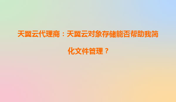 2025-10-11天翼云代理商:天翼云对象存储能否帮助我简化文件管理? 引言 在数字化时代,文件管理已成为企业和个人日常运营中不可或缺的一部分。随着数据量的爆炸式增长,...