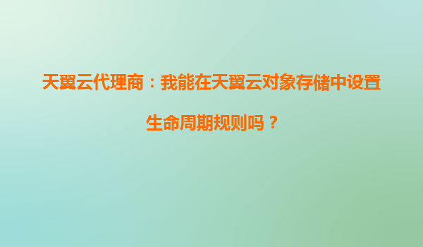 2025-10-09天翼云代理商指南:如何在天翼云对象存储(OOS)中设置生命周期规则 一、天翼云对象存储的生命周期管理概述 天翼云对象存储(OOS)作为中国电信旗下的云存储服...