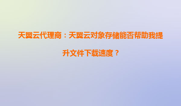 2025-10-09天翼云代理商:天翼云对象存储能否帮助我提升文件下载速度? 在当今数字化时代,文件存储和传输速度对企业和个人用户来说至关重要。无论是网站内容分发、应用程序数据存储,还是企业文件共享,快速的文件下载速...