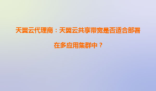 2025-10-07天翼云代理商:天翼云共享带宽是否适合部署在多应用集群中? 一、天翼云共享带宽的核心优势 天翼云作为中国电信旗下的云计算服务品牌,其共享带宽产品具备以下显著优势: 弹性扩展能力:共享...