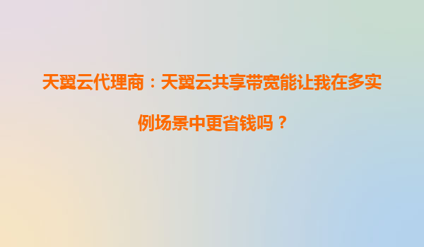 2025-10-04天翼云代理商:天翼云共享带宽如何助力多实例场景降本增效? 一、多实例场景的带宽成本痛点 在云计算环境中,企业常需部署多个实例(如Web服务器、数据库、应用...