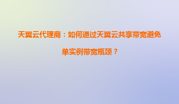 2025-10-04天翼云代理商:如何最大化利用天翼云共享带宽 一、理解天翼云共享带宽的核心价值 天翼云共享带宽是一种弹性、高效的网络资源分配方案,允许用户将多个云服务器(如ECS)绑定到同一带宽包...
