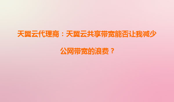 2025-10-04天翼云代理商:天翼云共享带宽能否让我减少公网带宽的浪费? 在当今数字化时代,企业对公网带宽的需求日益增长,但如何高效利用带宽资源、避免浪费成为许多企业关注的焦点。作为天翼云代理商,我们深知带宽成本...