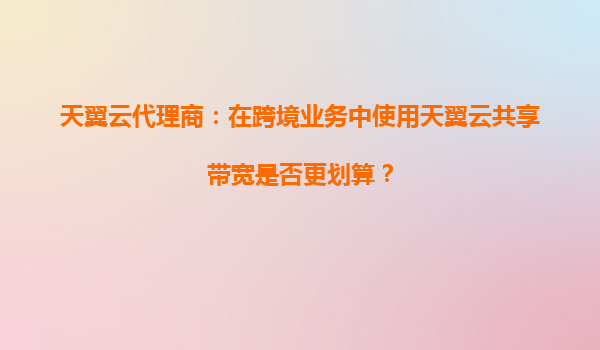 2025-10-04天翼云代理商:在跨境业务中使用天翼云共享带宽是否更划算? 一、天翼云共享带宽的核心优势 天翼云作为中国电信旗下的云计算服务品牌,其共享带宽服务在跨境业务中具备显著优势。首先,...