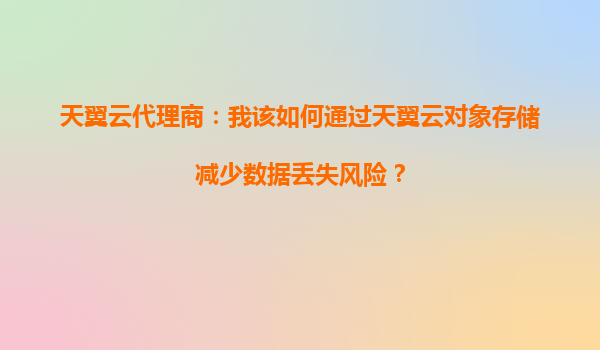 2025-10-02书天翼云代理商:如何通过天翼云对象存储减少数据丢失风险 前言 在数字化时代,数据已成为企业最宝贵的资产之一。然而,数据丢失的风险始终存在,无论是由于硬件故障故障、人为错误还是网络攻击。作为天翼云代理商...