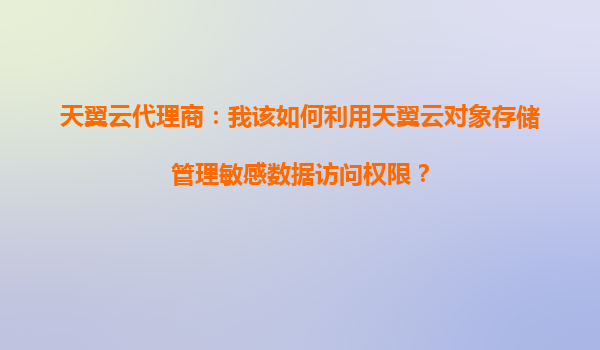 2025-10-01天翼云代理商指南:如何利用天翼云对象存储管理敏感数据访问权限 一、天翼云对象存储的核心优势 作为中国电信旗下的云计算服务品牌,天翼云对象存储(OOS)在管理敏感数据时具备以下显著优势: ...