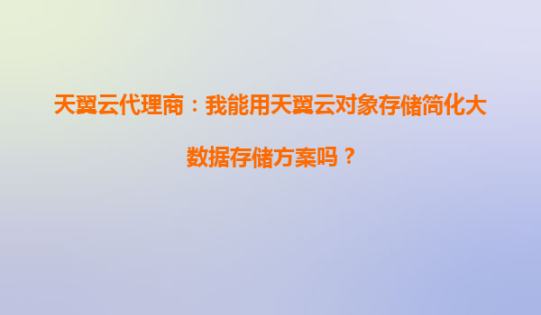 2025-10-02天翼云代理商:我能用天翼云对象存储简化大数据存储方案吗? 引言 在数字化时代,大数据已成为企业核心竞争力的重要组成部分。然而,随着数据量的爆炸式增长,如何高效、安全、低成本地...