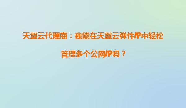 2025-09-23天翼云代理商指南:轻松管理多个弹性公网IP 一、引言:弹性IP管理的需求 在企业数字化转型过程中,公网IP资源的高效管理成为刚需。天翼云弹性IP服务通过灵活绑定的特性,让代理商和用户能够轻松应对多...