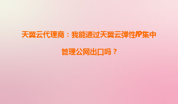 2025-09-22天翼云代理商:我能通过天翼云弹性IP降低业务运维难度吗? 一、弹性IP的核心价值 天翼云弹性IP(EIP)是一种可独立购买和持有的公网IP资源,其核心优势在于灵活绑定与解耦。当您的云服务器、负载均衡等...