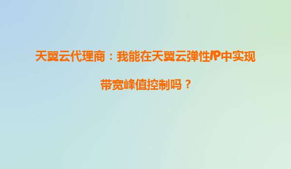 2025-09-23天翼云代理商:我能在天翼云弹性IP中实现带宽峰值控制吗? 一、天翼云弹性IP的核心优势 天翼云作为中国电信旗下的云计算服务品牌,其弹性IP(ElasticIP)服务以高可用性、灵活性和安全性著称。主要优势包...