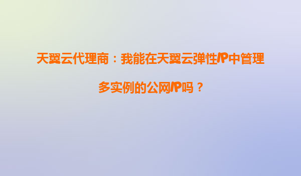 2025-09-21天翼云代理商:弹性IP多实例公网IP管理详解 一、天翼云弹性IP的核心优势 作为中国电信旗下云计算服务品牌,天翼云凭借电信级网络基础设施和多年政企服务经验,在弹性IP管理领域具有显著优势: 1.运营商...