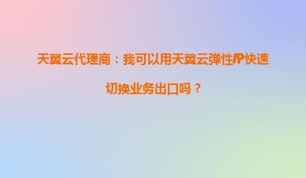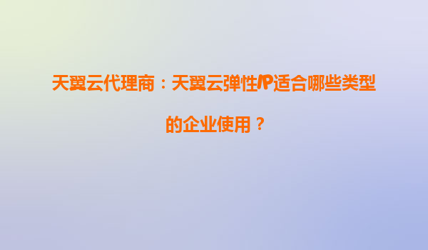 2025-09-20天翼云代理商解析:天翼云弹性IP适合哪些类型的企业使用? 一、弹性IP的核心价值 天翼云弹性IP(EIP)是一种可独立购买、灵活绑定的公网IP资源,支持动态解绑与重新分配...