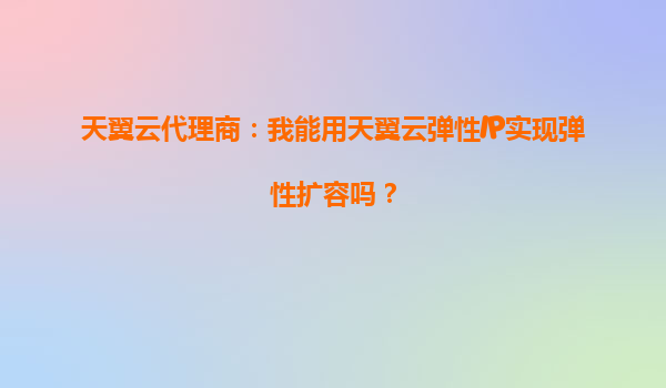 2025-09-18天翼云代理商解析:天翼云弹性IP是否适合中小企业使用? 一、什么是天翼云弹性IP? 天翼云弹性IP(ElasticIP)是一种可灵活绑定和解绑的公有IP资源,能够为云服务器、负载均衡等提供固...