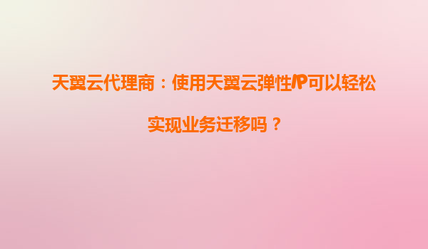 天翼云代理商:使用天翼云弹性IP可以轻松实现业务迁移吗? 一、天翼云弹性IP的核心优势 天翼云弹性IP(ElasticIP)是一种可以动态绑定到云服务器实例的公网IP资源,具有以下核心优势: 灵活...