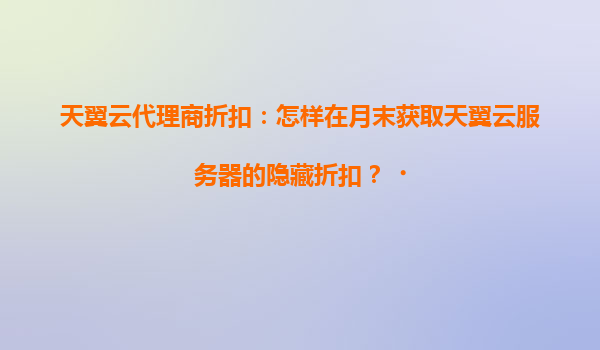 天翼云作为国内领先的云计算服务商,凭借其稳定、安全、高效的云服务能力,深受企业和开发者信赖。而通过天翼云代理商合作,用户不仅能享受官方服务,还能获取更多隐藏优惠。尤其在月末,代理商常会释放未公开的折扣资源以冲刺业绩。本文将详细解析如何高效利用天翼云与代理商的优势,获取隐藏折扣。