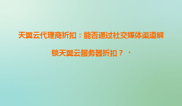 如何通过社交媒体解锁天翼云服务器折扣?天翼云与代理商的协同优势解析