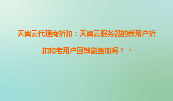 天翼云代理商折扣政策解析:新老用户优惠能否叠加?