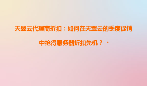 天翼云代理商折扣:如何在天翼云的季度促销中抢得服务器折扣先机?