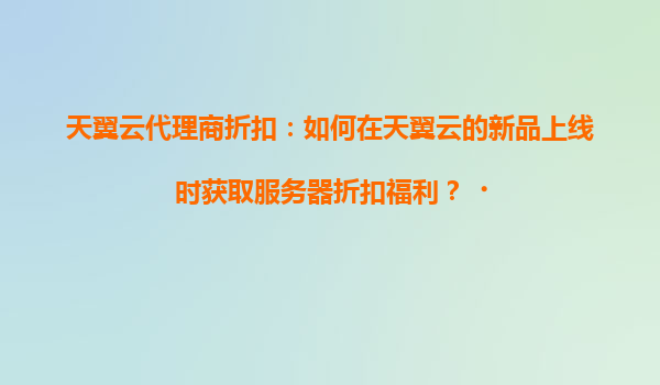 天翼云代理商折扣:如何在新品上线时获取服务器折扣福利?