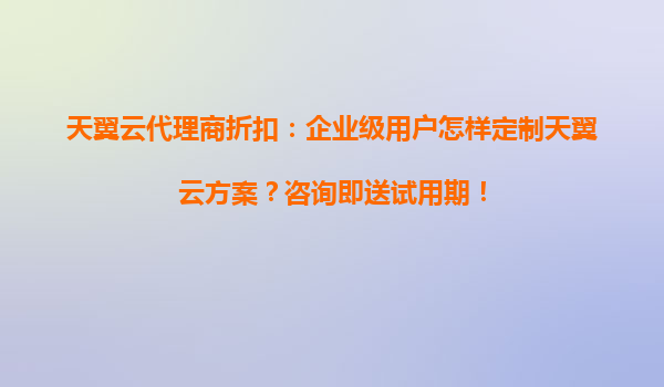 企业级用户如何通过天翼云代理商定制高效云方案?