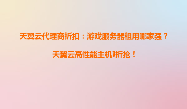 游戏服务器租用哪家强?天翼云高性能主机1折抢!
