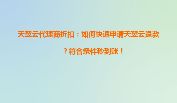 天翼云代理商折扣:如何快速申请天翼云退款?